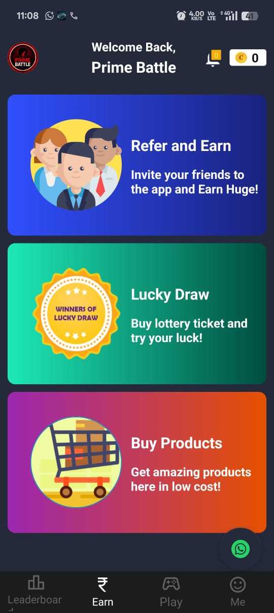 There is no points system or token or score or something else. people directly can earn real money with the Prime Battle app